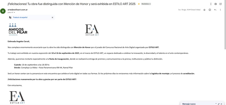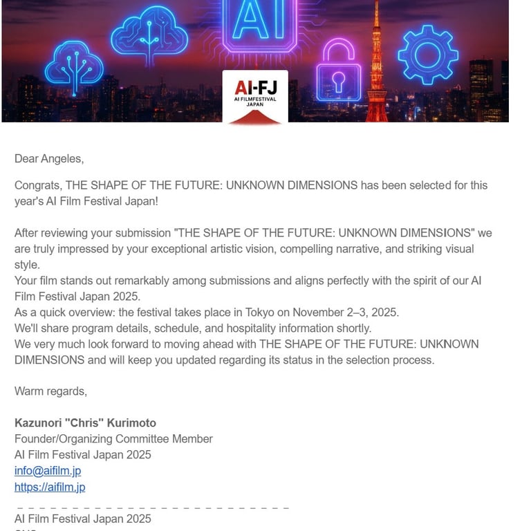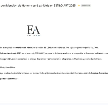 Finalist in the Best Ultra AI Ultra Short Film category at the Seoul International AI Film Festival, Korea - Selected in Japan IA Film Festival Tokio and Honorable Mention in the National Digital Art Contest UTOPÍA, Estilo Art - Pilar, Buenos Aires, Argentina - 2025